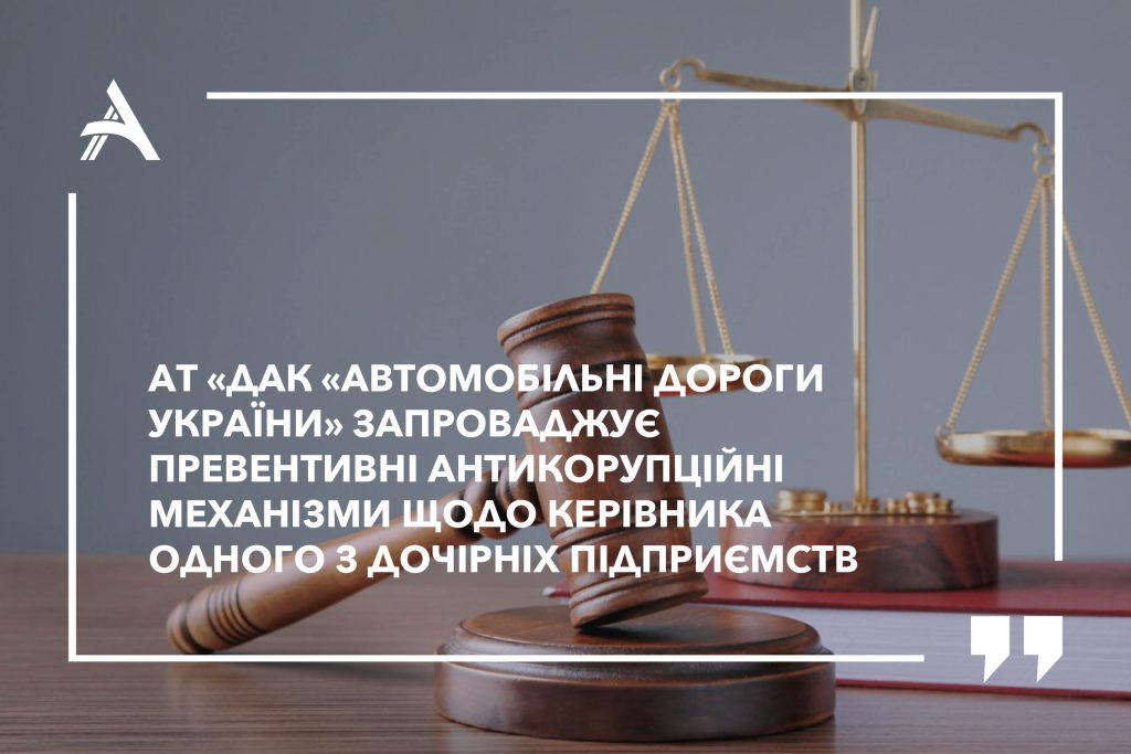 АТ «ДАК «Автомобільні дороги України» запроваджує превентивні антикорупційні механізми щодо керівника одного з дочірніх підприємств.